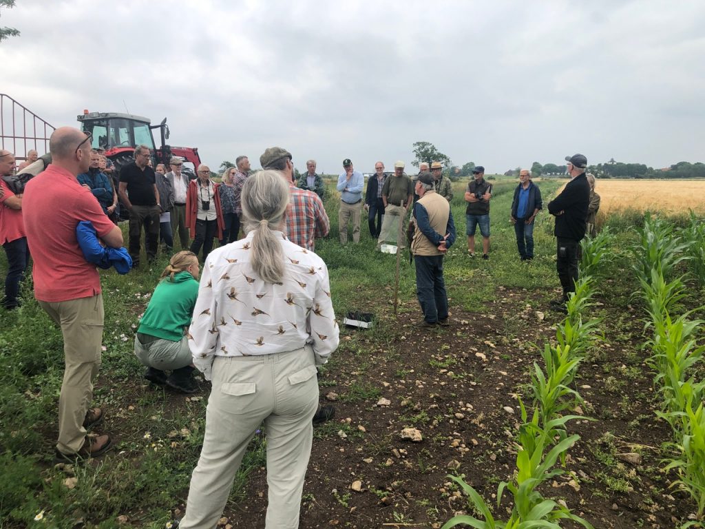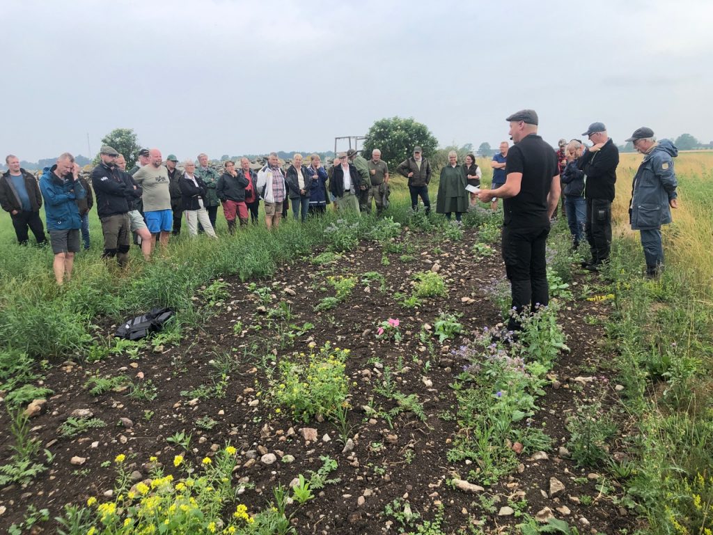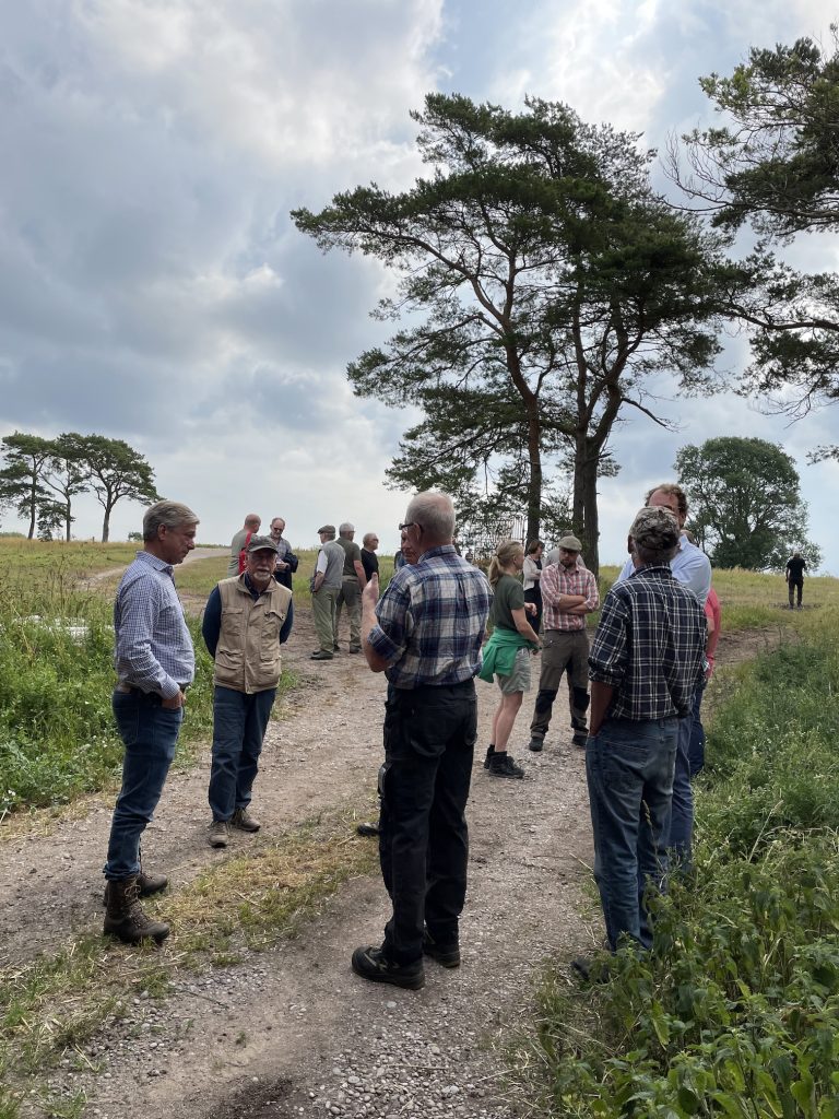 Exkursionen samlade ca 60 deltagare från Mälardalen i norr till Skåne i söder. Intresset var alltså mycket stort för det fleråriga projekt som Kungliga jaktklubben bedrivit på sina marker i Hulterstad och Alby på sydöstra Öland. Vi som deltog fick lära oss att förebilden är engelsk där forskning och erfarenhet visar att en nyckelfaktor för att få en stor population av vilda rapphöns är att kycklingarna får god tillgång på insekter under sina första levnadsveckor. Ett sätt att erbjuda detta är att odla så kallade blommande fältkanter och på klubbens marker finns 1,6 mil sådana blommande fältkanter. Denna form av biotopvård är inte bara bra för rapphönsen utan för hela den biologiska mångfalden i jordbrukslandskapet.